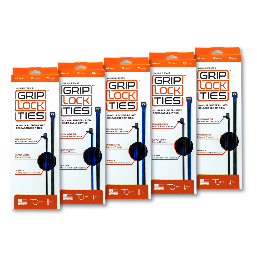 Unlike traditional cable ties and zip ties, GripLockTies® can be easily released and reused, saving money and reducing waste.