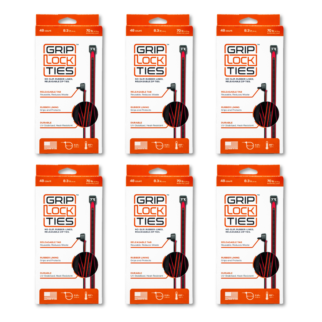 Unlike traditional cable ties and zip ties, GripLockTies® can be easily released and reused, saving money and reducing waste.